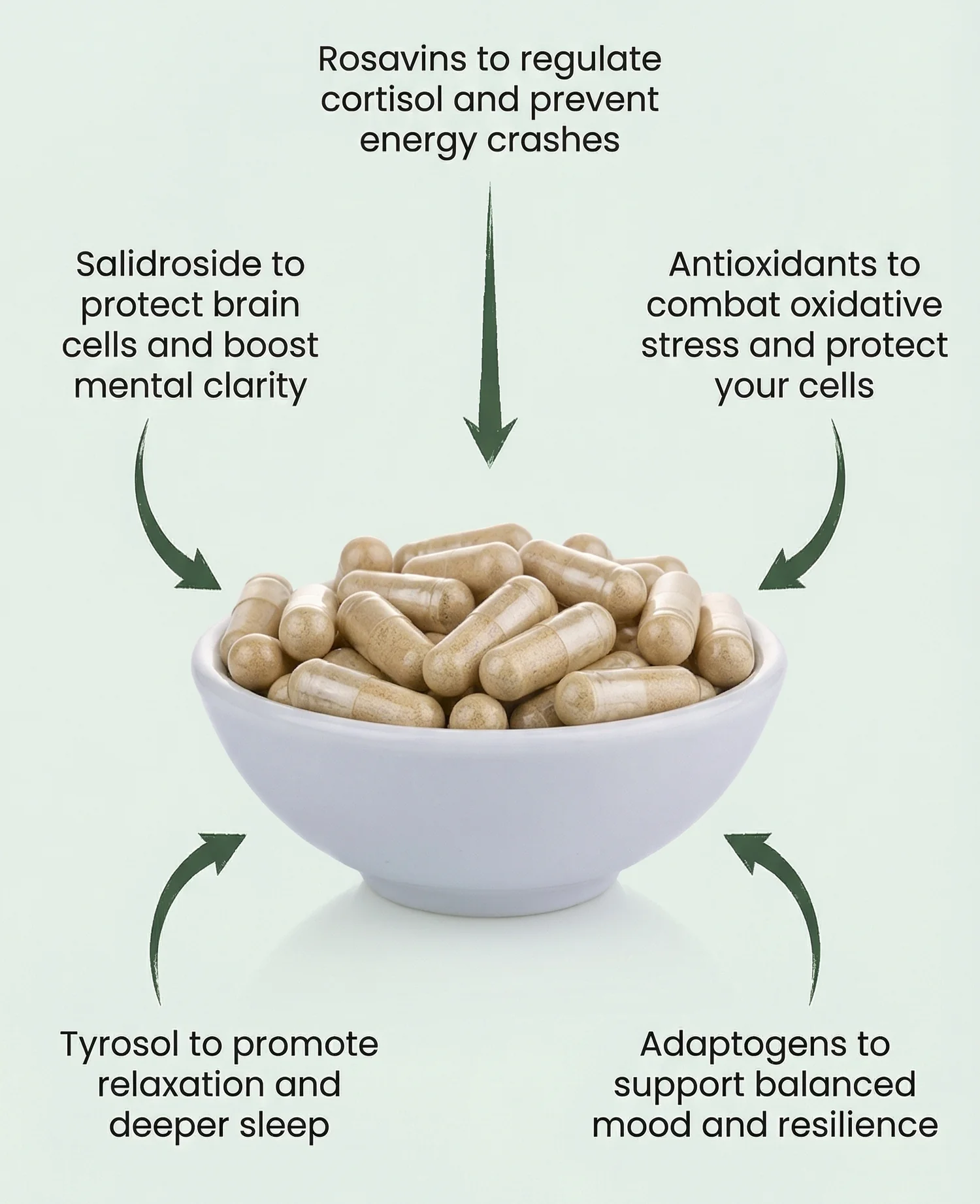- Natural Benefits: Rhodiola Rosea root extract to help your body naturally adapt to daily stressors*