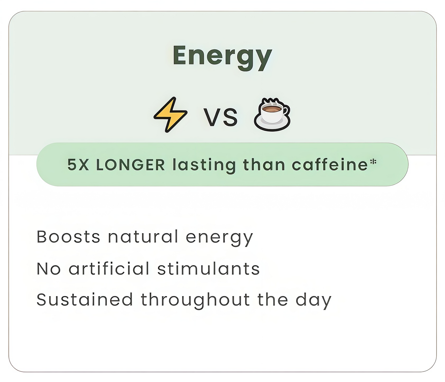 - Sustained Energy & Clarity: Promotes natural alertness without jitters or crashes, supporting concentration during demanding days*